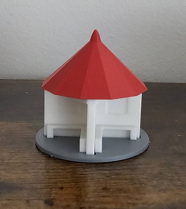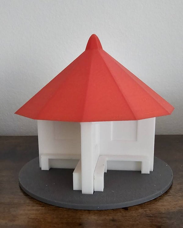 Ces modèles reproduisent le Spioenkop de Wenduine, un petit pavillon circulaire coiffé d’un toit conique rouge.