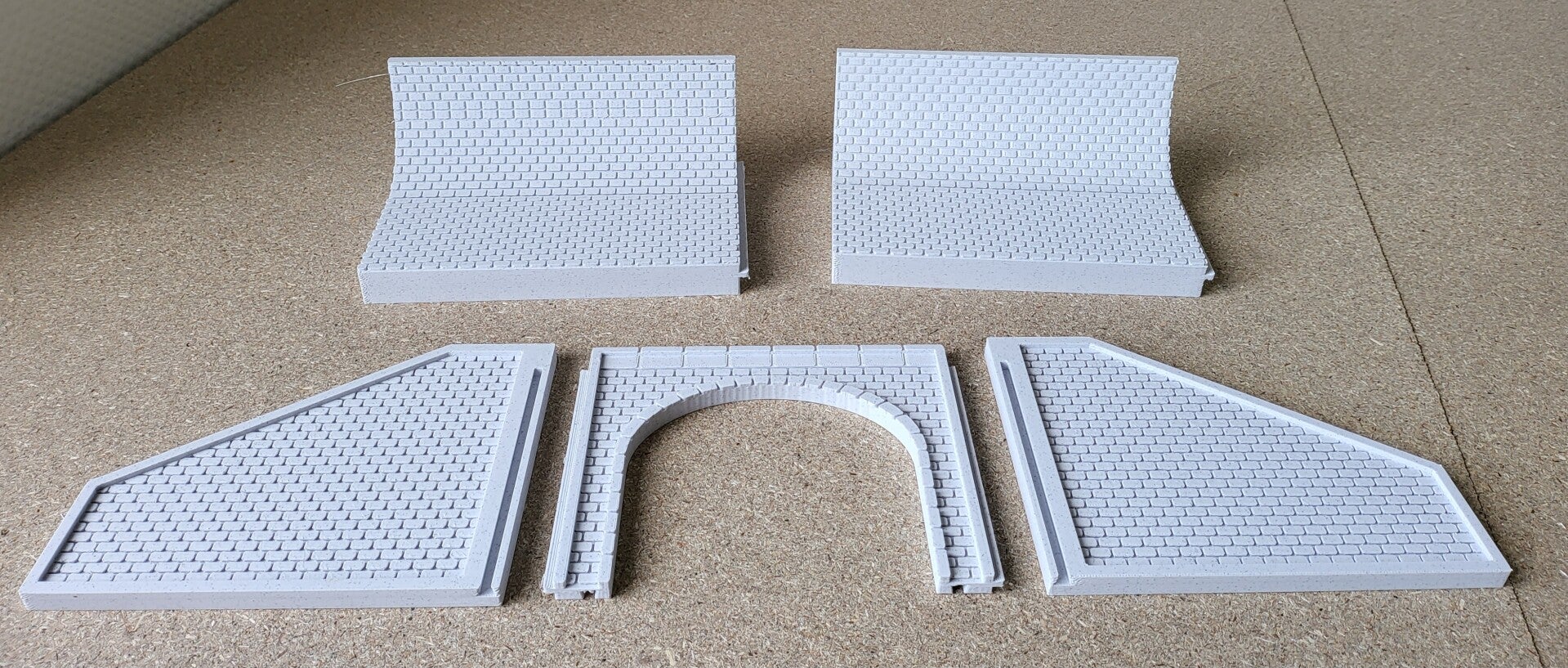 - Lot de 8 murs HO de 140mm de hauteur X 165mm de longueur (5 murs simple + 3 avec arches), l'ensemble s'emboite et est à coller pour satibilité.
