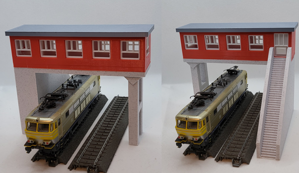 - Passerelle Ho double voie 100 mm X 150 mm X 90 mm, espace libre entre les escaliers 110 mm de large sur 70 mm de haut